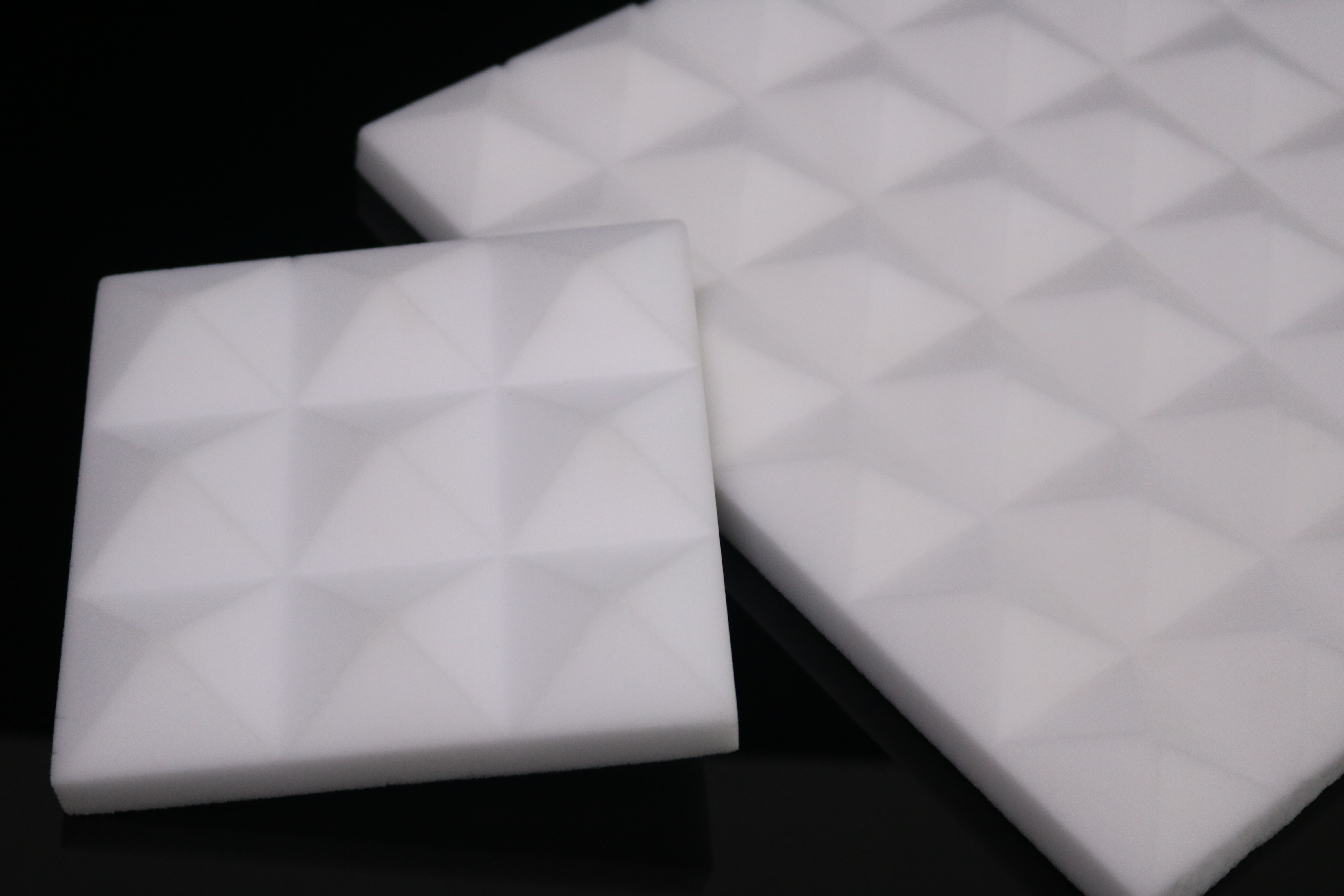 2.后加工性。納米海綿是一種柔軟的材料,易切割,便于后期的再加工,表面做波浪狀處理后吸音隔音效果更佳。在很多錄音棚里就大量使用了波浪狀的納米海綿作隔音材料。